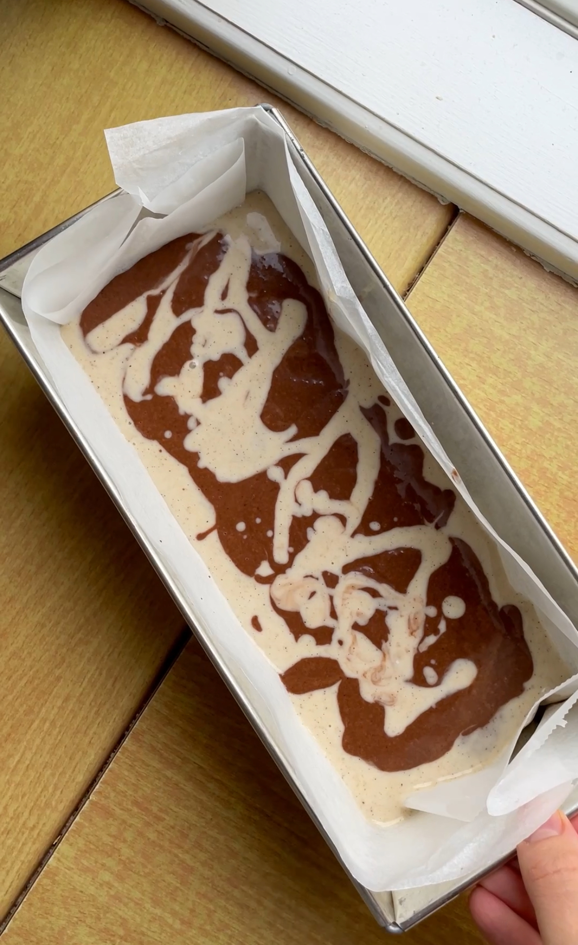 Varva de två olika smeterna i en avlång brödform täckt med bakplåtspapper. Frys in över natten.