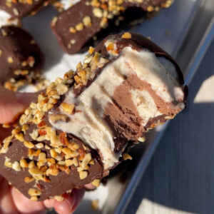 88:an – den där klassiska pinnglassen med choklad och hasselnötter – är en riktig barndomsikon. Och vet du? Den är förvånansvärt enkel att återskapa hemma! Den här hemmagjorda versionen har ett lent choklad & vaniljhjärta, knaprig choklad och rostade hasselnötter. Mindre vitt socker, inga konstigheter – bara riktigt god glass som passar hela familjen.