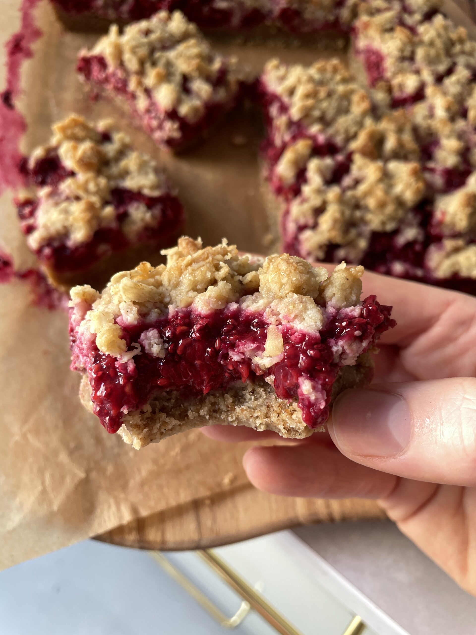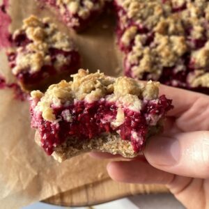 Hallongrottor – små, söta klassiker som alltid funkar – men tänk dig dem i långpanneformat. Samma krispiga mördegsbotten, en syrlig hallonsylt och ett smuligt täcke ovanpå. Långpannan gör inte bara bakningen busenkel, du får också många fler bitar att bjuda på (eller spara till frysen!).