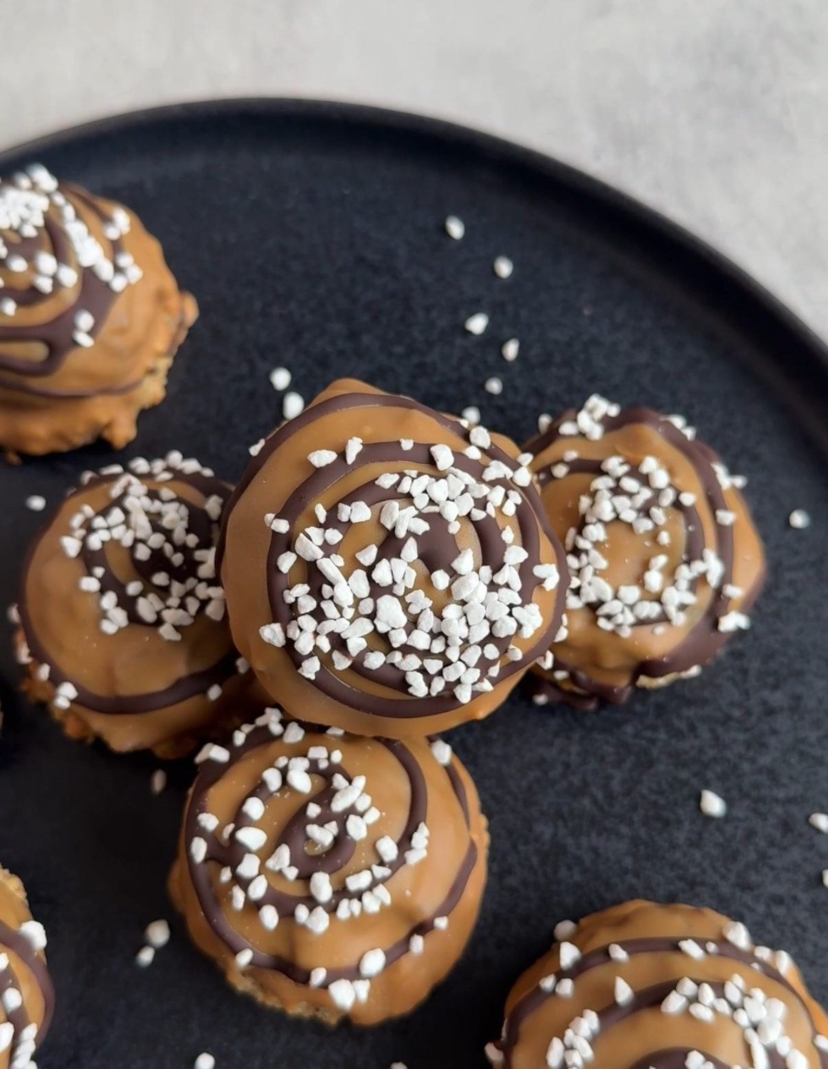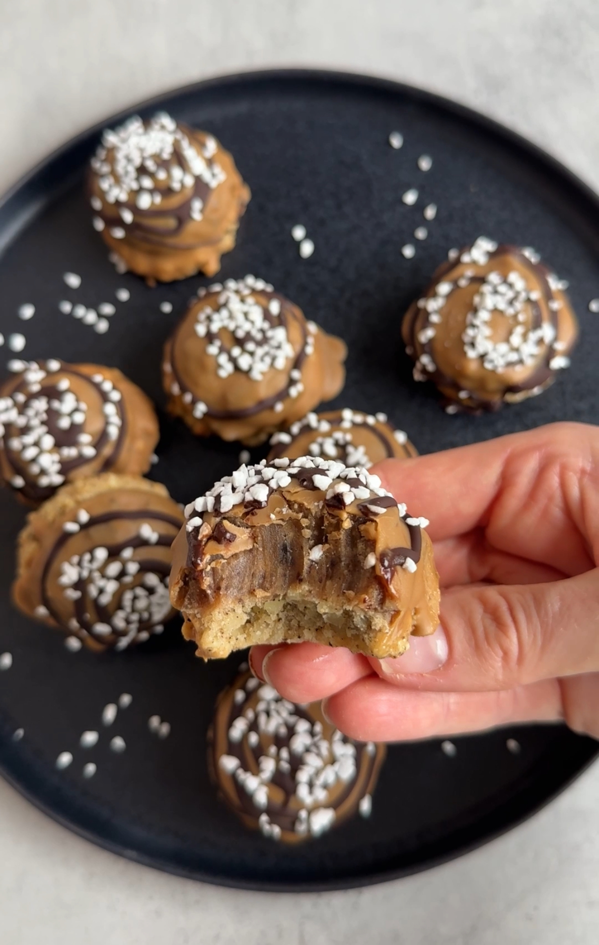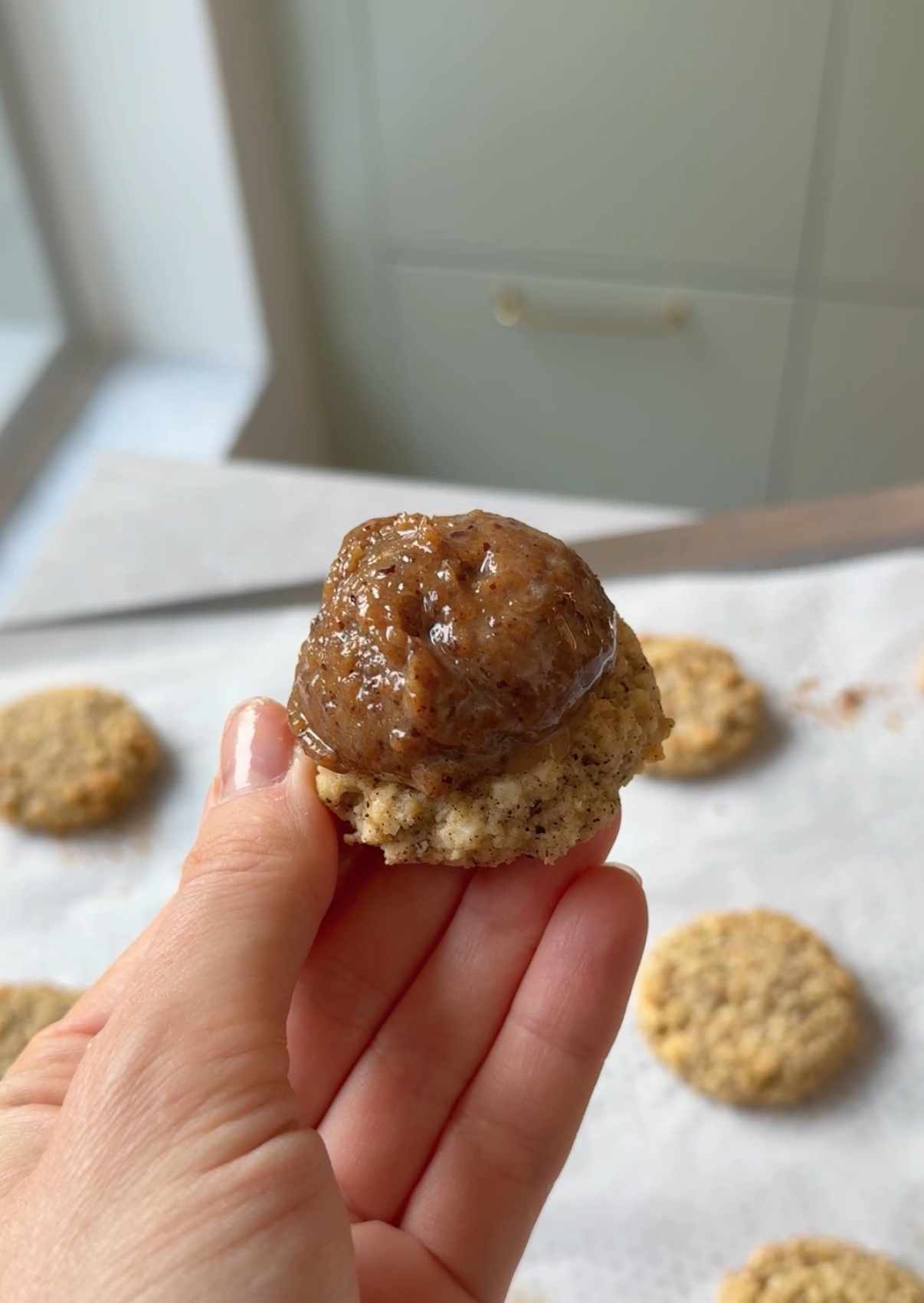 Kanelbullebiskvier med mjuk mandelbotten, sötseg dadelkola och mycket kardemumma och kanel – mums!