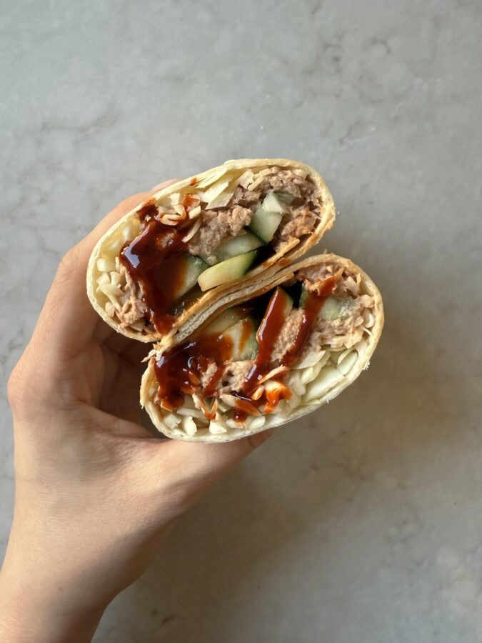 Samma morgon som du ska äta wrapen till lunch: Lägg tortillabröden på en plan yta.