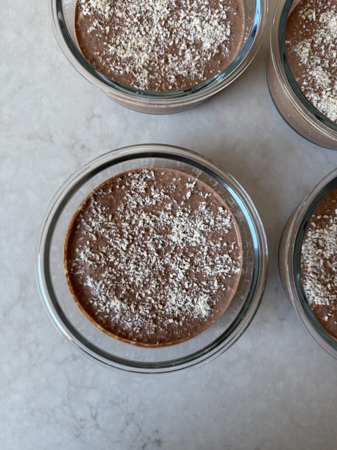 Rör ner yoghurt, kakao, honung och kaffe. Ställ kallt minst två timmar, men helst över natten.