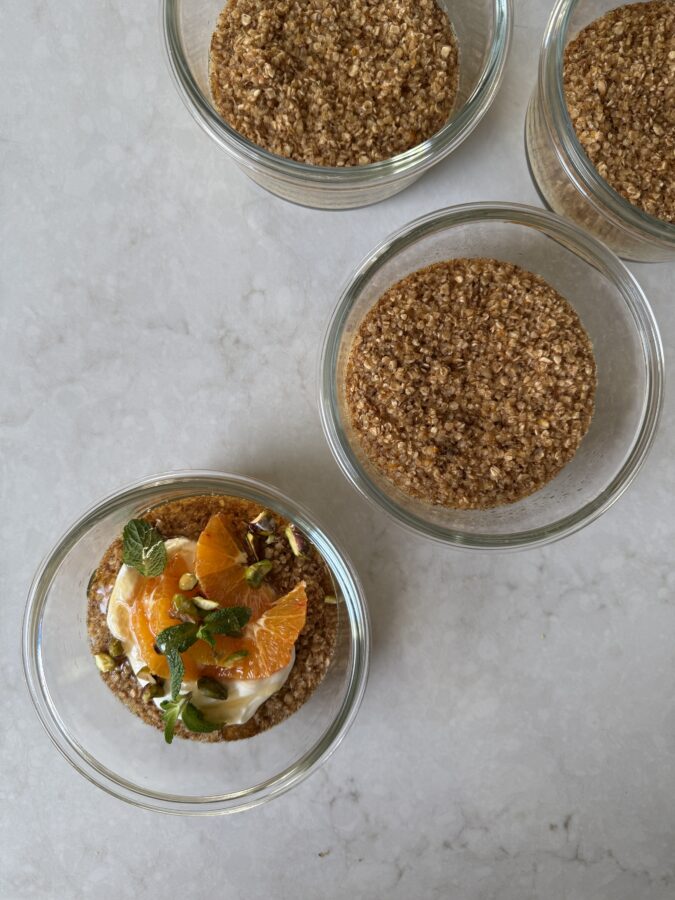 Låt svalna i alla fall 10 minuter och servera sedan med grekisk yoghurt, blodapelsin, pistagenötter, mynta och lite ringlad honung. Håller 3-4 dagar i kylen och toppings adderas smartast när det är dags att äta den.