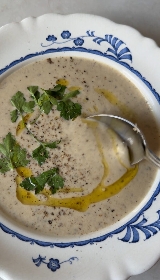 Det är från Portionen under tian som jag fick idén om att mixa ner vita bönor i soppan – så smart! Märks inte på smaken, men bidrar med protein och mättnad.