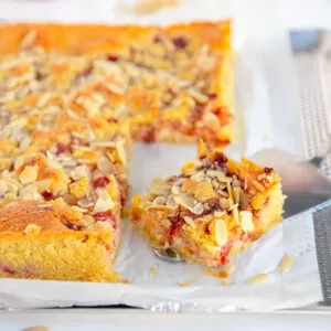 En otrolig saftig kaka bakad med plommon stekta i kanel och kardemumma med krispig smuldeg och mandelspån på toppen. Den går lika bra att baka med samma mängd nektariner, aprikoser eller persika. Glutenfri utan att ”smaka glutenfri”, det är bara en bonus att den är det, och därmed kan njutas av fler!