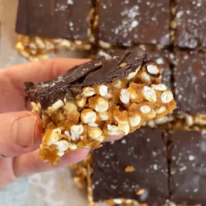 För att få till perfekta bitar – skär upp godiset i rutor precis när chokladen stelnat på ytan, men fortfarande är mjuk nog att skära igenom. För bästa resultat, låt snickersgodiset stå i kylen över natten. Det gör att bitarna håller ihop bättre och blir sådär härligt fasta utan att förlora sin sega konsistens.